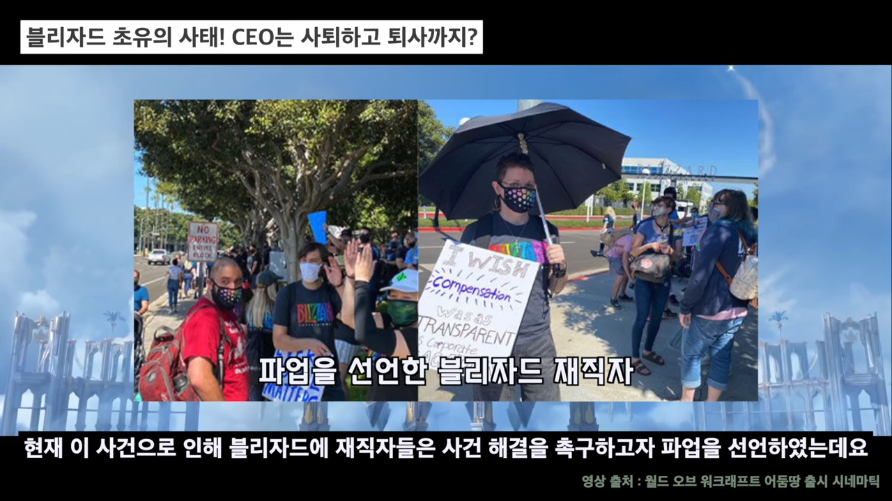 현재 이 사건으로 인해 블리자드에 재직자들은 사건 해결을 촉구하고자 파업을 선언하였는데요